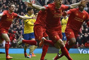El Liverpool humilló al Arsenal con un histórico 5-1 que deja al Chelsea como nuevo líder de la Premier y permite a los reds volver a soñar con el título. Si el Arsenal puede, ellos (a seis puntos del liderato) también. No obstante, Chelsea y City parecen a día de hoy los más fuertes…El Arsenal no reaccionó. Todo lo contrario. Tras sendos avisos de Sturridge y Suárez, Sterling hizo el tercero culminando una gran contra lanzada por Henderson poco antes de que Sturridge hiciera el cuarto tras un magistral pase de Coutinho. Con un 4-0 en 20 minutos el Liverpool bajó el ritmo y no encontró el quinto hasta el minuto 52, tras otra contra culminada por Sterling. Luego pudieron marcar más pero fue sin embargo Arteta, quien de penalti, hizo el 5-1 de la honra. Drama para los gunners y fiesta en Anfield.El Arsenal vivió un regreso a su pasado más negro; con falta de intensidad en la media, poca profundidad arriba y un coladero en la defensa. Se entregó desde el pitido inicial y cedió el 1-0 a los 55 segundos. Gerrard botó una falta y Skrtel, en fuera de juego, entró como un bisonte para hacer el primero. A los nueve minutos llegó la repetición. Gerrard centró, ahora desde la derecha, y el central hizo de cabeza el 2-0