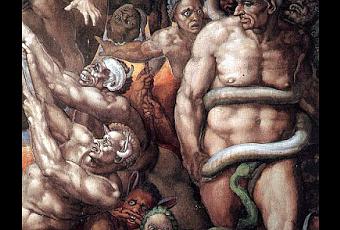 Fue ya Miguel Ángel, el grandísimo artista del Renacimiento, uno de los primeros que utilizara el Arte para mancillar, desvirtuar o criticar -a veces justamente, como en este caso- personas que, a bien o a mal, tuviera su creador en eternizar así, de una forma sarcástica, ofensiva, tendenciosa o ridiculizante, a sus retratados. Cuando Miguel Ángel Buonarroti (1475-1564) pensó cómo dibujar sus imágenes humanas en el fresco de la Capilla Sixtina, no dudó en que debía hacerlo al natural, desnudas como éstas eran y habían sido en su elemento real. Durante el proceso de creación del maravilloso fresco El Juicio Final, los prelados y consejeros del papa Paulo III se acercaban con éste a admirar la tan ocultada obra renacentista. Entonces un maestro de ceremonias del papa, Biagio da Cesena, no evitó decirle al papa delante del propio artista lo que pensaba del fresco, obra que aún no se había terminado de pintar en la pared de la Capilla vaticana: "¡Qué indecorosas imágenes pintadas en un lugar tan sagrado!; todos esos desnudos, mostrando aquí sin pudor sus vergüenzas, no es propio de la capilla de un papa, sino más bien de una hostería o de un prostíbulo de Roma".