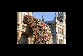 Cascadas de libros que emergen de las ventana y se precipitan en la calle, libros que salen de detrás de las paredes, remolinos de libros formando una especie de agujero negro… Posiblemente alguna vez hayáis visto alguna de las espectaculares esculturas de la madrileña Alicia Martín, una artista que se dedica desde principios de los años 90 a crear arte mediante impresionantes esculturas hechas con libros en desuso.