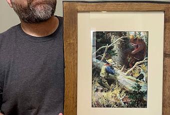 Trouble Buck(Tyrannosaurus al estilo 'The Lost World' añadido a la pintura de Hy Hintermeister "Trouble Bruin")