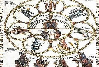 Las siete artes liberales, imagen del Hortus deliciarum (siglo XII), de Herrad von Landsberg.