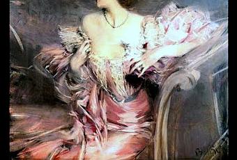 (Óleo El beso, 1925, Franz Helbing; Retrato de Marta de Florian, 1898, Giovanni Boldini; Óleo Contemplación, siglo XIX, del pintor británico Thomas Benjamin Kennington; Cuadro Orfeo, 1865, Gustave Moreau, Museo de Orsay, París; Relieve romano Baile de las Ménades, 140 d.C., copia de una obra griega del siglo V a.C., Museo del Prado, Madrid.)