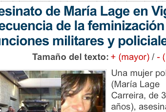 El artículo de Alerta Digital cuyo titular aclama “El asesinato de María Lage en Vigo, consecuencia de la feminización de las funciones militares y policiales” recoge un auténtico contenido sexista a la par que insensible con respecto al fallecimiento de una mujer en acto de servicio. Éste mismo, no va firmado, lleva el nombre de la redacción, tal vez por temor a represalias de la población.
