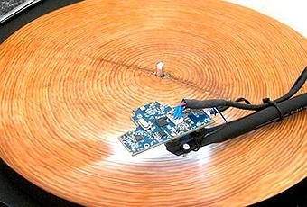 Traubeck ha creado un dispositivo muy parecido a un tocadiscos, con algunas modificaciones que lo hacen único: en vez de aguja, hay una pequeña cámara sacada del Playstation Eye, conectada a una placa de Arduino; en vez de discos de vinilo, hay una rodaja de un tronco, girando en torno a un eje. La cámara lee los surcos del tronco, y el procesador, conectado con Ableton Live, lo interpreta según unos sonidos que Traubeck ha programado. ¿El resultado? Melancólicas piezas de inspiración neoclásica que conforman un disco llamado "Years" que puedes escuchar (y comprar) en su bandcamp. Su intención es musical, pero sobre todo quiere hacernos conscientes de que todo a nuestro alrededor esconde datos e información, y que sólo debemos saber cómo interpretarlos.