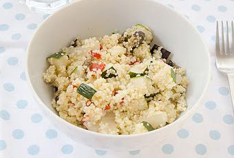 Ingredientes.- 1 Berenjena- 1 Pimiento rojo.- 1 Calabacín.- 300 gramos de cous cous precocido.- Sal.- Aceite de oliva virgen extra.