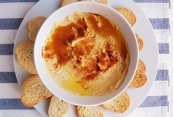 Ingredientes.- 215 gramos de garbanzos.- 1 diente de ajo.- El zumo de medio limón.- Sal.- Una cucharadita de postre de cominos molidos.- Pimentón dulce.- Aceite de oliva virgen extra.- Tahini: 1 cucharada de sésamo tostado y aceite de oliva virgen extra.