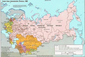 Repúblicas administrativas de la antigua Unión Soviética en 1989, antes de la independencia de las repúblicas soviéticas tras la caída del muro de Berlín. Imagen: Perry-Castañeda Library (PCL) of the University of Texas at Austin.