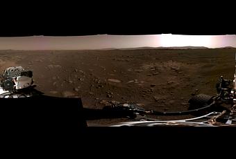 https://www.cosmonoticias.org/wp-content/uploads/2021/02/sonido-perseverance.wavHoy también se publicó la primera imagen panorámica (ver fotografía superior) de la misión desde el lugar de aterrizaje del rover, tomada por las dos cámaras de navegación ubicadas en su mástil. El laboratorio robótico de seis ruedas, el quinto rover que la agencia ha aterrizado en Marte, se encuentra actualmente en una revisión exhaustiva de todos sus sistemas e instrumentos.