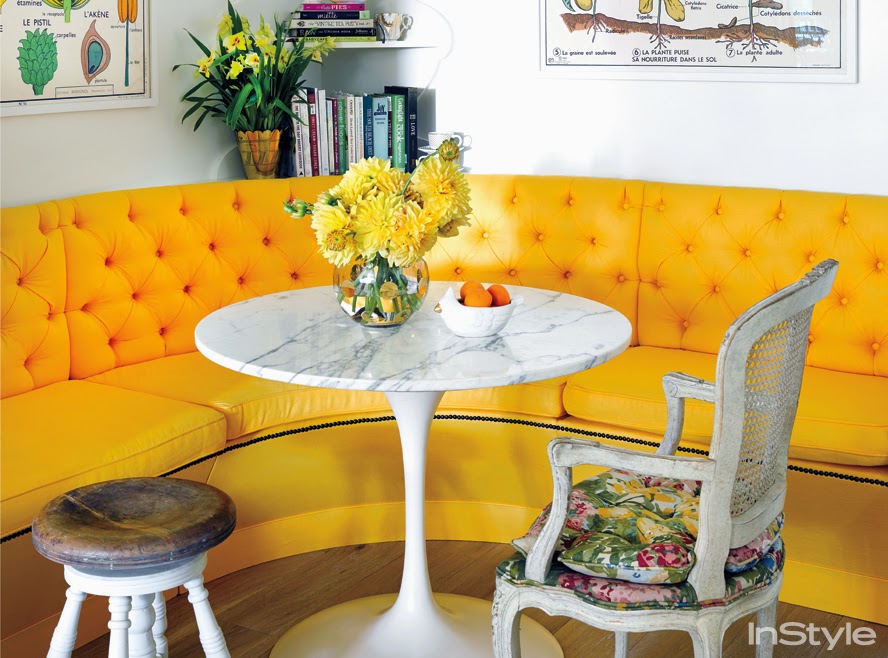 Este pequeño espacio con sillón tipo años 50 en color chillón,