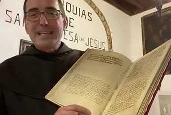El P. Miguel Márquez, superior de la Provincia Ibérica “Santa Teresa·, nos muestra el autógrafo del libro de las Moradas de Teresa de Jesús, que se custodia en el convento de las carmelitas descalzas de Sevilla.