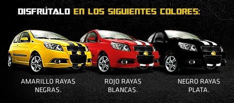 Las manijas y espejos son del mismo color de la carrocería, tiene un moderno spoiler trasero, salida de exhosto cromada con estilo deportivo y rines 15" pulgadas en aluminio que lo hacen un carro divertido y atractivo para todos. En su imponente frente se destacan las franjas deportivas negras que van desde el bumper delantero hasta el baúl y allí, se exhibe el espectacular corbatín dorado de Chevrolet. Su interior tiene un espacio superior donde pueden ir cómodamente 5 personas. Tiene un elegante diseño en la consola y acabados que le brindan uniformidad y armonía. Además cuenta con un diseño ergonómico, cojinería en cuero con costiras del mismo color de la carrocería, que lo hace aún más deportivo, y verdaderamente único en su clase.El automóvil tiene un Branding distintivo donde se imprime el nombre "Transformers - Revenge of the fallen”, acompañado de 2 espectaculares franjas que atraviesan el vehículo desde su parte trasera pasando por el techo y finalizando en el capot. El vehículo estará disponible en diferentes colores: amarillo con franjas negras, negro con franjas plateadas y rojo con franjas blancas que conmemoran a los legendarios Autobots de Transformers. ¿Queres ser parte de este blog?