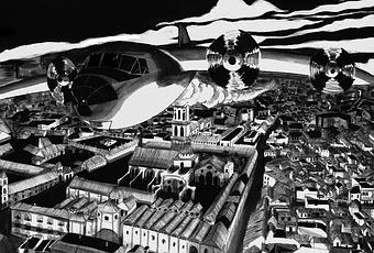 El dibujo está hecho con tinta china, a pincel y rotulador y unas pequeñas aguadas para las sombras. Me estoy planteando darle algo de color ¿qué opináis?