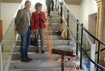 El Concejal de Patrimonio Municipal y la edil de ONGs del Ayuntamiento de Lorca, Francisco García y Antonia López, han informado que esta mañana se está procediendo a la instalación de un salva escaleras para facilitar a personas de movilidad reducida el acceso a la sala de Cabildos y el Catastro, entre otras zonas del edificio principal de la Plaza de España”.