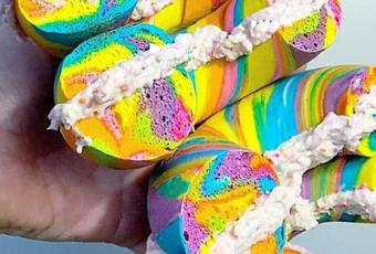 Los bagels Arco iris supuestamente saben mejor con el queso crema hecho en casa Funfetti. "Eso es como comer pastel para el desayuno, que, como, ¿quién no quiere eso?", Dijo un cliente.