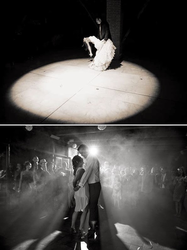 Decorar la zona de baile con iluminacion como farolillos, bengalas, como ya hablamos en post anteriores, alguna proyección sobre el suelo como estrellas, las iniciales de los novios, lanzar pétalos, pompas de jabón...