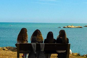 Hay algo que no se ve en esta instantánea: el reencuentro, la alegría, la expectativa, la ilusión, las ganas y la juventud. Hay que añadir el sonido del mar, el olor a sal, la risas y el día brillante, como diciéndoles: “Hasta el infinito y más allá.”