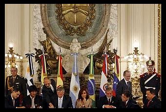 Tras la ratificación por parte de Argentina, el presidente Hugo Chávez dijo que Unasur, el Banco del Sur y la Alianza Bolivariana para los Pueblos de nuestra América (ALBA) son las estrategias de futuro de la integración latinoamericana.