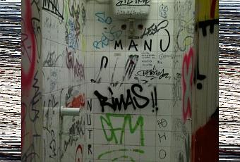 Me dirigí a los baños, creo que nunca había estado en unos baños tan sucios, en Estados Unidos cuidan mucho la higiene de los lavabos pero aquel olía a orín y estaba sucio y lleno de pintadas.
