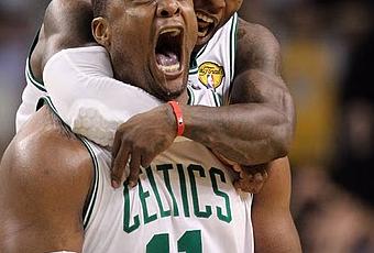 Y ese último periodo fue propiedad de los role players de los Celtics. Doc Rivers arriesgó con un quinteto en el que a Ray Allen (otra vez negado desde el triple -0 de 4-, acabó con 12 puntos) le acompañaban Nate Robinson, Glen Davis, Tony Allen y Rasheed Wallace, todos ellos contra el quinteto de lujo de los Lakers. En los visitantes Gasol empezaba a acusar el cansancio por los minutos acumulados, a Kobe se le empezaban a quedar cortos los triples y Odom y Artest continuaban su particular calvario en ataque. Sin embargo, Boston encontró en sus suplentes ese puntito extra que otorga salirse de un guión encorsetado y sacar provecho de la anarquía. A Nate Robinson se le puede achacar el no saber jugar los sistemas de ataque, pero es innegable su descaro y su tesón por jugársela siempre. Anoche, haciendo la guerra por su cuenta, sacó de sus casillas a los Lakers y encendió al público. Por su parte, Tony Allen se dejó la piel para que Kobe no recibiera en buenas condiciones, y Rasheed aportó su granito de arena con una gran defensa sobre Gasol y un triple frontal que ponía tierra de por medio en el electrónico. Pero si hay que destacar a alguien anoche, sin duda es a Glen Davis. Big Baby anotó 9 de sus 18 puntos en el periodo final, siendo el jugador más decisivo. Resultaba épico contemplar como peleaba cada rebote en ataque, como se fajaba en cada contacto y como sacaba a relucir su calidad para conseguir canastas que parecían imposibles. Su jugada de canasta y tiro adicional para culminar una contra fue el momento álgido de este jugador cuya importancia crece a pasos agigantados. Después de esa acción, su gesto de rabia -incluso echando literalmente espuma por la boca- ejemplifica a la perfección la personalidad de los Orgullosos Verdes: un equipo que nunca se rinde.