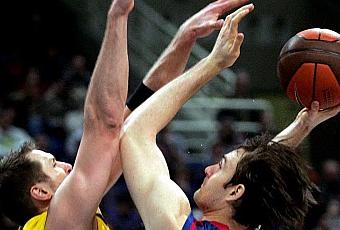 Un tiempo muerto del propio Bartzokas y la ausencia forzada de su jugador más entonado, Keys (se fue al banquillo con dos triples, pero con otras tantas personales), reactivaron curiosamente al Maroussi. Convencido de sus posibilidades de ganar y dirigido por Batis, sustituto de Keys (12 puntos), los locales remontado hasta lograr su 24-18 (a los 10m 48s). Un aviso para el Barça, incapaz de frenar por momentos la producción de Kaimakoglou (nueve), Mavroeidis (seis) y Nadjfeji (siete). El Maroussi era quien gestionaba el partido como más le convenía, con ataques muy largos ante un Barça conservador, que a pesar de su candidez no pasó excesivos apuros en cuanto se esmeró en defensa y surgió Navarro, que anotó diez de sus 13 puntos en el segundo cuarto (28-29 a los 25m 8s). Lorbek (14 puntos) y Vázquez (ocho) también contribuirían decisivamente a que los azulgrana alcanzasen el descanso con su máxima diferencia hasta entonces (35-42). Un marcador engañoso que no resumía las dificultades por las que había pasado el Barça, que hasta los 17m 19s no lanzó tiros libres.