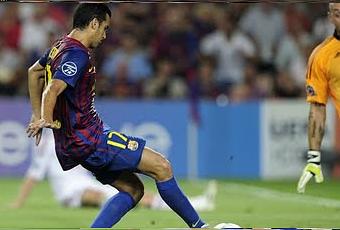 El FC Barcelona comenzó su defensa del título con un empate a dos. El vigente campeón arrancó el encuentro de la peor manera posible, con un tanto genial de Pato, pero con el paso de los minutos y liderado por Lionel Messi, dio la vuelta al resultado con los goles de Pedro Rodríguez y de David Villa de falta. Sin embargo, y a falta de un escasos segundos para el final, un inapelable cabezazo de Thiago Silva dio al Milan un punto de su visita del Camp Nou. Fiel a las sorpresas, Josep Guardiola no defraudó en la alineación y dejó varias novedades. Con la baja de Gerard Piqué y con la presencia en el banquillo del capitán Carles Puyol, los centrocampistas Carles Busquets y Javier Mascherano ocuparon el centro de la zaga. Además Cesc Fàbregas no fue de la partida y Pedro Rodríguez llenó el hueco dejado por el lesionado Alexis Sánchez. En el bando rossoneri, las ausencias en el ataque de Zlatan Ibrahimović y de Robinho hicieron que la responsabilidad ofensiva cayese sobre los hombros de Pato y de Antonio Cassano. Pero si alguien esperó un camino de rosas para el campeón no pudo estar más equivocado. El Milan apenas tardó unos segundos en poner patas arriba el Camp Nou. En el primer balón que tocó Pato se giró en círculo central y vio un agujero en la zaga local. Se tiró un autopase y con una zancada impresionante se plantó en el área para batir a Víctor Valdés con un disparo raso. Fue una jugada llena de potencia y clase que heló a la grada local. Tras el tanto el Barça se apropió del balón y buscó la reacción, pero el encuentro se había puesto muy de cara para las intenciones de un Milan que juntó líneas y acumuló hombres por detrás del balón. Lionel Messi tiró de galones y los azulgranas comenzaron a trenzar juego. El argentino avisó con un disparo desde la frontal que Christian Abbiati despejó a córner y con un lanzamiento de falta que se estrelló en el palo. Pero no era suficiente para el Barça. El Milan se sintió cómodo y nada le favoreció más que jugar con el marcador a favor. Pato siguió sembrando el pánico en la zaga local y estuvo a punto de repetir la fantástica jugada del primer gol. Sufría el Barça, que no encontraba la forma de meter mano al cuadro rossoneri. Tuvo que ser a través de Messi. El argentino se adentró en el área a plena revolución. Su velocidad y lucha le llevaron a apurar línea de fondo bajo la mirada de un puñado de defensas milanistas y tocó el balón para que Pedro Rodríguez, desde el área pequeña, fusilase sin apenas oposición en el 36'. Otro no hubiera llegado a ese balón, que se perdía en línea de fondo, pero sí Messi, omnipresente en todos los ataques azulgranas. La entrada de Fàbregas por el lesionado Andrés Iniesta no trastocó los planes locales e incluso los mejoró. El Milan se incomodó con el juego entre líneas del ex gunner, y el Barça se aprovechó para colocarse por delante. David Villa, casi inédito en el primer tiempo, se pidió un lanzamiento de falta en el 50' y colocó el balón en la misma escuadra, imposible para Abbiati. Ahora sí, con el marcador a favor, el Barça fue el de las grandes ocasiones, con un juego fluido, mucho más vertical. El Milan, en cambio, no volvió a pisar el área de Valdés y acusó el esfuerzo defensivo de Incluso la grada, mucho más tranquila a pesar de lo ajustado del resultado, disfrutó con los regresos de su gran capitán, Carles Puyol (lesionado durante los últimos meses), y de Ibrahim Afellay. Pero el Barça no cerró el marcador y el Milan, un equipo con mucha historia y peso, se lo hizo pagar. En un saque de esquina, cuando el partido agonizaba, Thiago Silva dibujó un cabezazo de manual para firmar el empate a dos final.