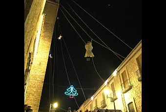 Se empleó un despliegue brutal de medios humanos y materiales: hasta 17 personas estaban colgadas del Campanario simultáneamente, junto con 3 miembros más en el suelo controlando la llegada de las niñas y niños de entre 7 y 12 años. Un total de 20 espeleólogos implicados en una escena de apenas 5 minutos que necesita varias jornadas de trabajo duro, arriesgado, preciso y coordinado. El material invertido sobrepasó los años anteriores con más de 1000 metros de cuerda, un centenar de anclajes, placas y mosquetones, y un listado técnico muy largo de pequeños pero importantes elementos de seguridad. Todo ello para conseguir lanzar por 5 vías independientes y simultáneas a las y los ángeles en un espectáculo único en España (que sepamos...).