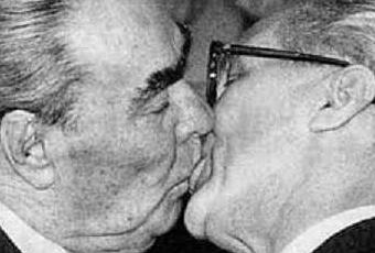 El famoso "beso fraternal socialista" entre Brezhnev (izquierda) y Honecker (derecha)
