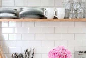 Un fondo blanco, creado a base de madera barnizada, baldosa metro, una pared encalada o ladrillo rústico... Sobre el que colocar estanterías que nos permitirán presumir de utensilios culinarios...