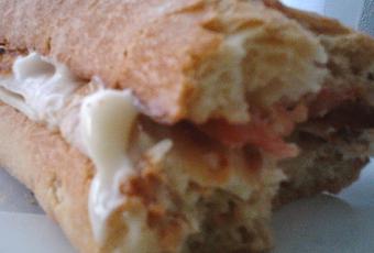 NÚMERO DE PERSONAS2TIEMPO DE PREPARACIÓN15 minutosMATERIAL NECESARIOVitro, plancha, cuchillo, tabla, hornoINGREDIENTES4 Lonchas de queso de cabra2 filetes de pechuga1 tomatePanAlioliPREPARACIÓN1. Precalentamos el horno a 180ºC2. Vertemos una pizca de sal sobre la plancha en caliente y asamos los filetes de pechuga por ambos lados.3. Cortamos el tomate a rodajas finas.4. Abrimos el pan y lo introducimos en la parrilla del horno y lo horneamos unos cinco minutos.5. Sobre el pan, disponemos los filetes de pechuga asada, las lonchas de queso de cabra, las rodajas de tomate y extendemos bien el alioli sobre la rebanada superior del bocadillo.Receta aportada por Juan Ruíz