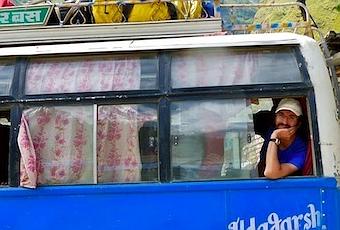 Los alemanes por su parte, tuvieron que ir sentados junto al chofer entre varios locales en ese espacio amorfo de asientos no asientos que los buses nepalís acondicionan al frente. Notamos que los rebeldes alcanzaron buenos sitios, van sentados a mitad del bus.