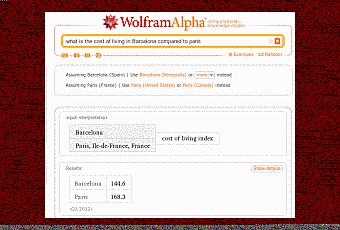 Solo tenemos que entrar en wolframalpha.com y buscar algo del estilo “what is the cost of living in Barcelona compared to Recife“, obteniendo tablas comparando precios de diversas categorías, ayudando así a dar una idea mejor relacionada con el costo de vida en cada región.