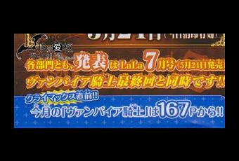 A finales de enero, anunciamos que El Caballero Vampiro entraba en su recta final; hoy os podemos avanzar que la serie finalizará en el número de julio de la revista, que sale a la venta el 24 de mayo, tal y como pone en la imagen que tenéis al principio de la entrada. Así, la serie más longeva de Matsuri Hino contará con un total de 93 capítulos y 19 tomos, cuando nosotras planteábamos que serían entre 20 y 21.