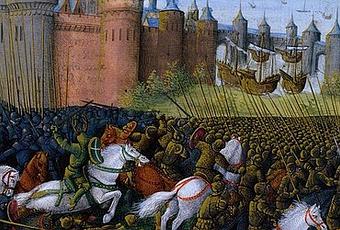 En el asedio a Tiro, 1187, donde podemos ver a Sancho Martín ‘El Caballero Verde. Miniatura de Jean Colombe (hacia 1474)