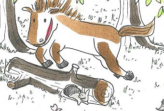 Cuando se dio cuenta de dónde estaba, el caballo se preocupó porque no sabía regresar. Pero en ese momento apareció un gracioso cervatillo que le preguntó si le podía ayudar.