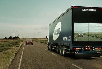Es el concepto sobre el que está trabajando la firma electrónica surcoreana Samsung. El proyecto se conoce como "Safety Truck". Es como si el tráiler se volviera transparente. Cuando el vehículo se coloca a rebufo, cuatro gigantescos monitores permiten al conductor ver cómo fluye el tráfico por delante de estos gigantes de la carreta y calcular con seguridad el momento para adelantarlo. Además, anticipa frenazos y choques con obstáculos en la carretera, como animales muertos.