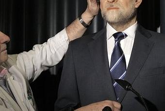 Rajoy es un presidente de incógnito. Mientras su equipo se desgasta dando malas noticias, él permanece en las sombras. ¿Inactivo? De ninguna manera… Posando para la eternidad. El museo de cera de Madrid presentó el pasado martes la figura de cera de nuestro presidente del Gobierno. La escultura quedó expuesta en un pódium al lado justo de la familia real, en el lugar que hasta ese mismo día ocupaba la de Zapatero. El ex presidente ha sido trasladado al almacén por, según la dirección del museo, falta de espacio. El Rajoy inanimado, aún más inanimado, quiero decir, mide 1,86 metros y pesa 78 kilos. Cuando los periodistas preguntaron a los técnicos del museo por alguna característica especial de la figurita de Rajoy, se limitaron a decir que “tiene mucho pelo”.