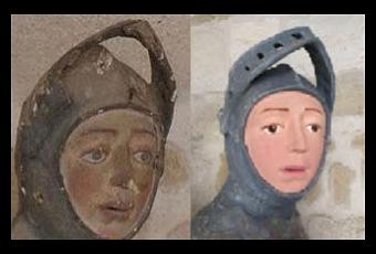 Y la tercera enlaza con la primera parte de esta entrada. Si allí todos estaban encantados con la Virgen a titanlux y la veneraban, aquí la gente está bastante cabreada con la restauración del San Jorge. ¿Y cómo han consentido que se deteriorara tanto? ¿Le rezaban? (¿Se le reza a un San Jorge?) ¿Le pedían cosas? (¿Se le piden cosas a un San Jorge?) ¿Estaban orgullosos de él? ¿O languidecía en su hornacina?