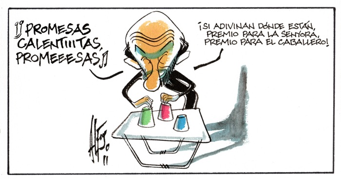 Mientras Rubalcaba distrae al personal con sus promesas calentitas enfriadas por la oposición, Ferrán Martín presenta unas “Olimpiadas por caridad”, J. R. Mora, sus “Mentiras y verdades”, Malagón, su “Italia en el punto de mira”, Medina, su “Banca-pinza” y Eneko, “la OTAN o la NATO”.