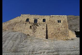 Otra de lashabitaciones, una verdadera gruta, presenta en sus paredes doce agujeros, quehacen pensar en la representación de un reloj o un lugar de culto.A través de lasvarias aperturas, se observa un plano inclinado por donde se descendían eltrigo hasta un molino. En los alrededores se aprecian los pozos para acumularel agua que se recogía a través de canaletas cavadas en la misma roca.Desde lo más altodel castillo, se divisa un inmenso panorama de los valles y elevacionescircundantes, lo que explica la importancia del lugar como punto deobservación.