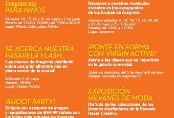 Virgen Active Aragonia llevará a cabo del 5 de mayo al 8 de junio todos los miércoles por la mańana una master class para quien quiera ponerse en forma y habrá también exposiciones relacionadas con el mundo de la moda.