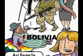 sin quorum alguno. El jefe del Ejército, Williams Kaliman, le colocó la banda presidencial y la “presidenta interina” enarboló una Biblia gigantesca por ser “un acto de fe”. La autoproclamada presidenta pertenece al Movimiento Demócrata Social, un partido que, en las últimas elecciones, apenas tuvo un 4% de los votos, consiguiendo 4 diputados del total de 130 y 1 senador de 36. Una circunstancia que recuerda a Venezuela, donde el autoproclamado presidente de este país, Juan Guaidó, forma parte de un partido (Voluntad Popular) que sólo tiene 20 de los 167 diputados en la Asamblea Nacional. Pero el chapucero golpe boliviano se llevó la palma gracias una sanguinaria represión ejercida, a las noticias falsas inventadas y a un “levantamiento popular masivo” expandido por la red, a través de miles de cuentas de perfiles falsos, creadas para multiplicar su efecto. “Contra el bueno de Evo –escribe Andrés Piqueras en Público– no se podían inventar monstruosidades. Su acción gubernamental no daba ocasión para fabricarle protestas. Al revés, había subido todos los indicadores sociales, el salario mínimo aumentó en al menos un 127% y el PIB en un 400%; después de haber sido el país más pobre de América del Sur, redujo la pobreza del 34 al 15% y la desigualdad entre ricos y pobres disminuyó de 168 a 60 veces; creó por primera vez pensiones para los mayores de 65 años, potenció la sanidad pública a límites desconocidos, así como el transporte y las infraestructuras; se asfaltaron más de 13.000 km de carreteras..., y, en el gobierno de Morales, la mitad de los cargos públicos fueron ocupados por mujeres, de las cuales el 68% eran indígenas. Todo ello se había conseguido con gran respeto para el capital, que siguió obteniendo sus réditos porque no se tocaron las bases de su ganancia. Con estas condiciones, a EEUU y a la oligarquía nacional no les quedó otra que inventarse un fraude electoral”.