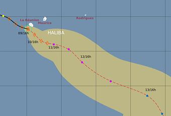 En esta nueva noticia les vamos a informar que en el océano Índico sur, más precisamente al este de Madagascar, se ha formado el ciclón tropical "Haliba" el domingo 8 de marzo y actualmente esta afectando con fuertes lluvias y oleaje peligroso a la isla de la Reunión y la isla Mauricio.El sistema posee vientos máximos de 75 km/h con rachas superiores de 100 km/h y tiene un movimiento Sudeste a 10 km/h.