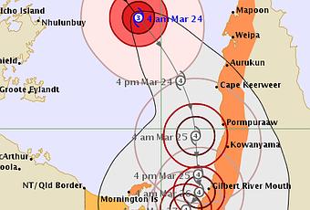 Otra información para mencionar es que "Nora" afectará severamente toda la costa Noroeste del estado de Queensland(Australia), con torrenciales lluvias, fuertes vientos y oleaje muy peligroso. Posiblemente y según los modelos meteorológicos, podría tocar tierra en alguna zona de la costa Noroeste de Queensland, entre el día domingo 25 y lunes 26 de marzo.