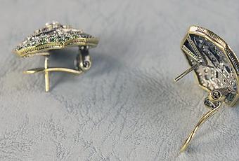 Este tipo de cierre es uno de los más utilizado por su comodidad y por ser un tipo de cierre que sienta bien a todo el mundo. Es especialmente conocido por su seguridad y comodidad, aunque es un tipo de cierre que se suele usarse en pendientes de más peso o de mayor tamaño, ya que es un cierre que nos asegura una mejor sujeción. Su nombre viene del parecido de su forma con la letra del alfabeto griego.