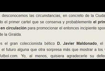 "…de la Ciudad de Sevilla nos ha llegado el primer cartel que se conserva y probablemente el primero que se debió poner en circulación para promocionar el entonces incipiente sport del football en la capital de la Giralda.