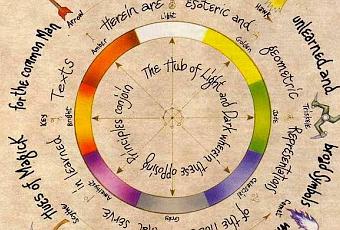 Sin duda alguna,la WD 113 UK(Mayo de 1989) es una de las que mas tesoros esconde.Ayer encontré este dibujo,de John Blanche,donde sale este "circulo de los colores de la magia",explicando cuales son,sus símbolos,etc.Esto es de la segunda o tercera edición de WFB.