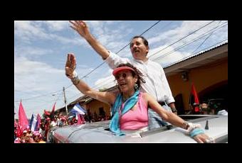 Daniel Ortega y Rosario Murillo en un mitin en Granada en 2006. AP