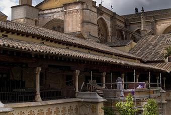 Al encontrarse la feria en el lugar donde Pedro Tenorio planeó su construcción, los propietarios de los puestos y tiendas fueron reacios desde el primer momento. Eugenio Narbona cuenta el interés del arzobispo por ocupar cuanto antes «las alcaycerías, que es el lugar donde las mercadurías se venden». Claustro alto de la Catedral de Toledo.