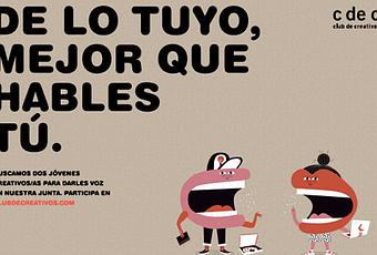 La gente joven tenemos mucho que aportar en el mundo de la publicidad. En el Club de Creativos lo saben y por eso han puesto en marcha esta genial iniciativa en la que buscan 2 jóvenes creativos para darles voz en su junta. Los candidatos serán un creativo/a junior (entre 2 y 5 años de experiencia) y un creativo/a senior (entre 5 y 8 años de experiencia), que se unirán como vocales a su junta y aportarán su visión en sus reuniones en primera persona. Según ellos mismos dicen en su oferta de trabajo, buscan gente "con ideas capaces de mejorar el sector, que aún conserve todos los pelos en la cabeza, pero que no tenga ninguno en la lengua".