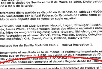 “…A raíz de todo esto, y movidos posiblemente por la euforia, incluso se ha llegado a afirmar, desde algún foro próximo al Sevilla FC que el <<Recreation Club>> era un Club de Recreo dedicado en mayor medida al Cricket y al Lawn Tennis. Esto es sin duda una falta de respeto enorme hacia el Recreativo de Huelva, que de nuevo nos vemos obligados a desmentir con las pruebas documentales pertinentes. Veamos, no obstante en primer lugar, lo que dicen: